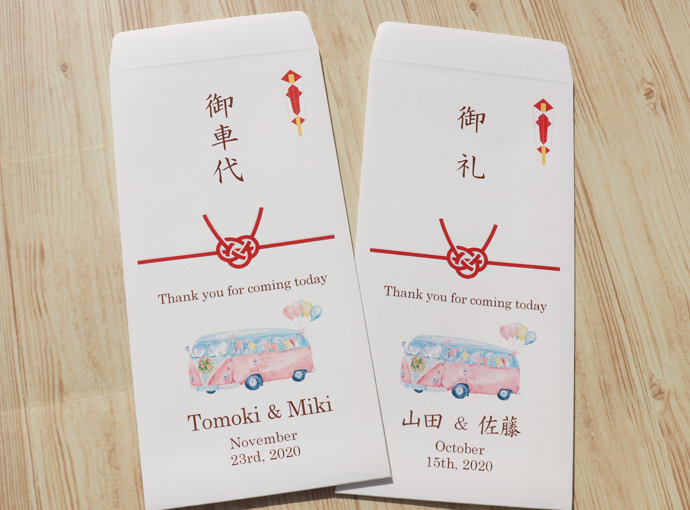ポチ袋は、結婚式当日に遠方から来たゲストに手渡すお車代や、受付を頼んだ友人へのお礼等で使用します。