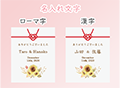 名入れ文字は、ローマ字と漢字表記のどちらでもOKです。おこのみで♪